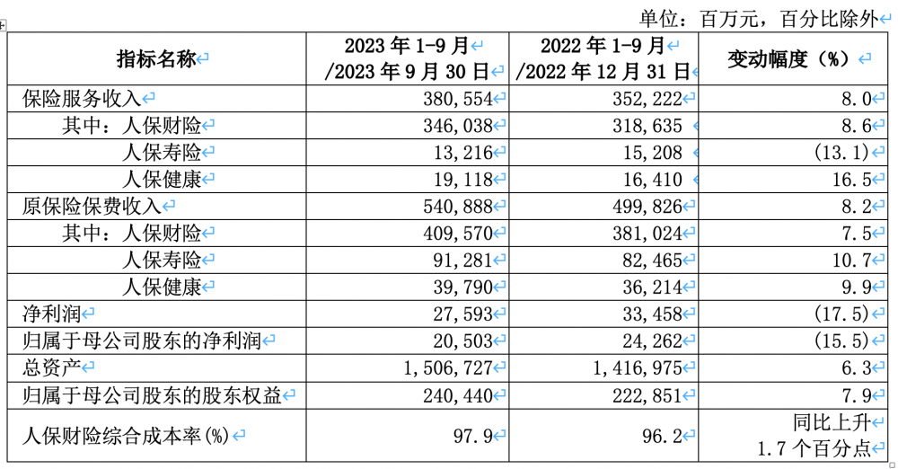 近日,中国人民保险集团股份有限公司(以下简称“中国人保”)发布公司2023年前三季度业绩。