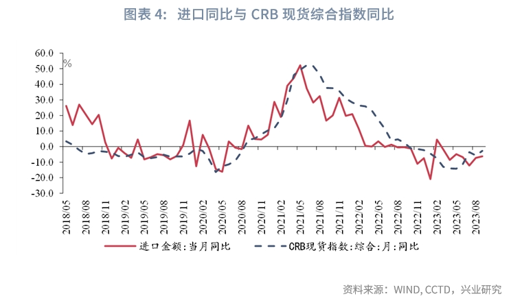 在进口方面,国内需求温和复苏叠加大宗商品价格回升,进口同比降幅有望逐步收窄。一方面,逆周期宏观调控政策落地生效,国内经济温和复苏有助于进口需求稳定;另一方面,截至10月27日,CRB大宗商品价格现货指数同比下降2.1%,降幅较前月收窄0.6个百分点。结合韩国进口高频数据看,10月1-20日韩国对我国出口同比下降6.1%,降幅较前月1-20日收窄2.9个百分点。