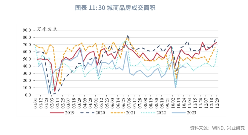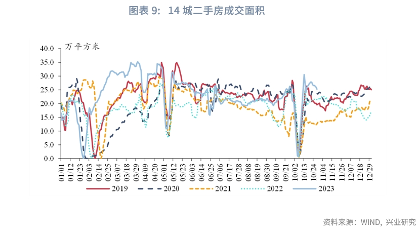 M1方面,10月30大中城市商品房成交面积同比录得-10.3%,新房销售跌幅明显收窄,结合季节性因素,10月M1同比预计较上月上行0.4个百分点。M2方面,10月社融增速预计有所反弹,在季节性因素下,10月M2同比预计较上月上行0.1个百分点。