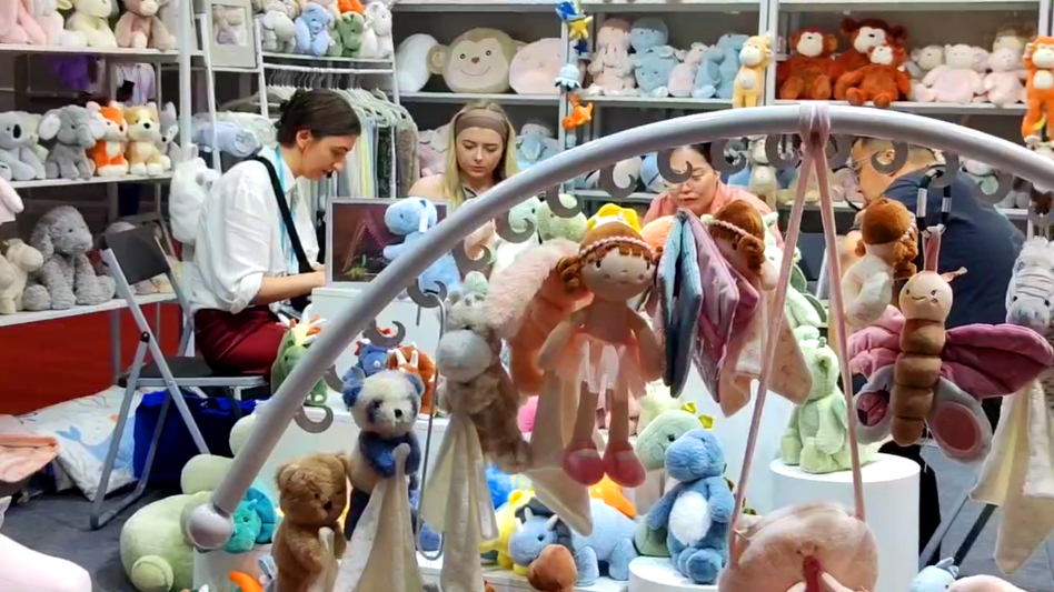 展位罗列了各式各样的产品,传统毛绒、塑胶与新材质玩具绽放异彩。