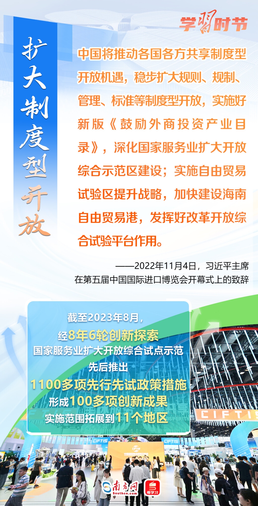 11月5日至10日,第六届中国国际进口博览会将在上海举行。这个由习近平主席亲自谋划、亲自部署、亲自推动的世界上首个以进口为主题的国家级展会,目前已成为举世瞩目的贸易盛会、开放合作的重要平台、全球共享的国际公共产品。第六届进博会举行在即,让我们通过一组海报,重温习近平主席在过去五届进博会上的重要讲话,深刻认识高水平对外开放的时代意义与关键作用。