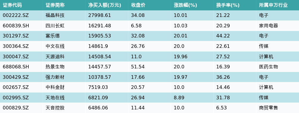 11月8日龙虎榜营业部净买入额前10详情见下表: