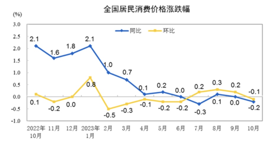 10月CPI转负同比下降0.2%,猪肉等食品价格回落是主因