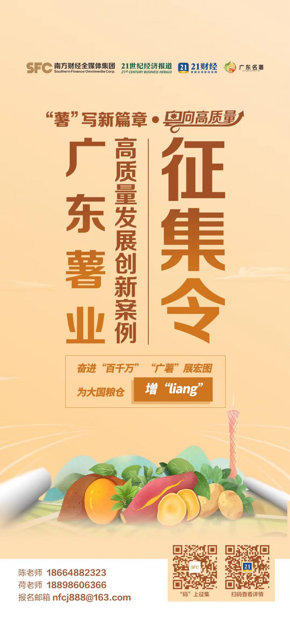 “2023广东薯业高质量发展创新案例”征集活动由南方财经全传媒集团发起,组建多位薯业专家组成的评审委员会进行联合评审,围绕优质品种、育苗模式、种植技术、商品化生产、薯业深加工、品牌营销、“薯业+研学/体验/康养”新业态等领域,面向广东生产经营主体、上下游产业链企业、产业园、科研院所、产业协会等进行征集,为广东薯业产业发展提供多维参考。