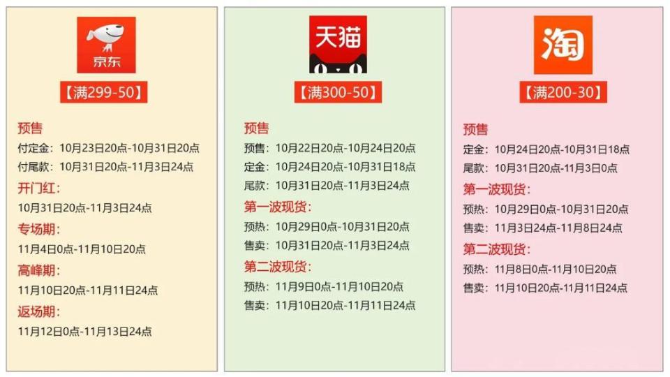 比如,抖音电商现货销售的价格最早从10月20日开始,快手电商的预售则从10月18日开启,拼多多的大促时间为10月20日-11月13日。