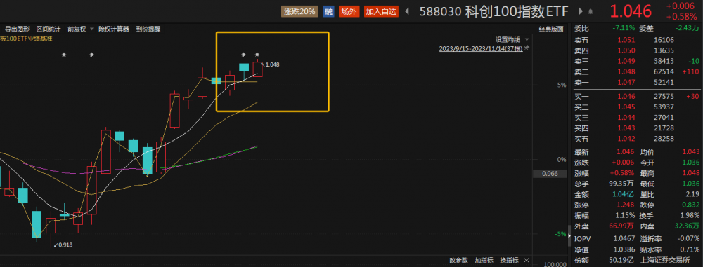 跟踪科创100(000698)规模最大的ETF——科创100指数ETF(588030)盘中冲高,现涨0.58%,盘中价格一度涨至1.048创历史新高,目前成交额突破1亿元。