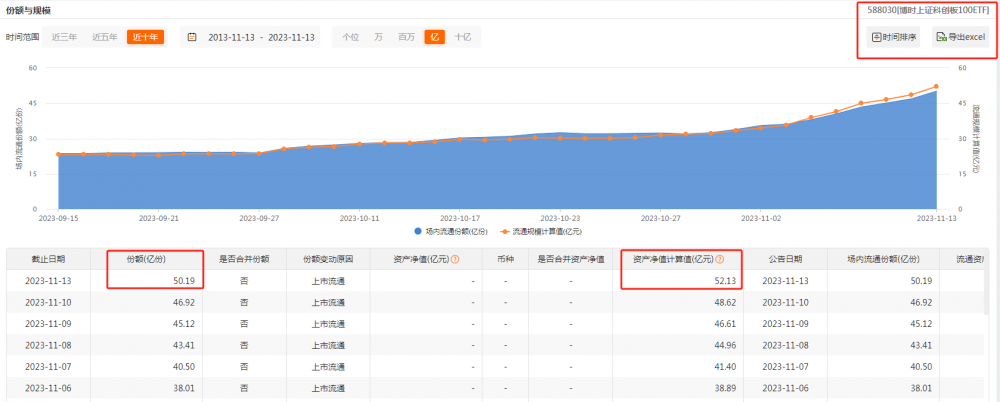 科创100指数ETF(588030)近日份额、规模持续增长,双双续创历史新高。截至11月13日,该ETF最新份额突破50亿份大关,最新规模突破52亿元,较上市首日分别增长112.31%和124.41%。