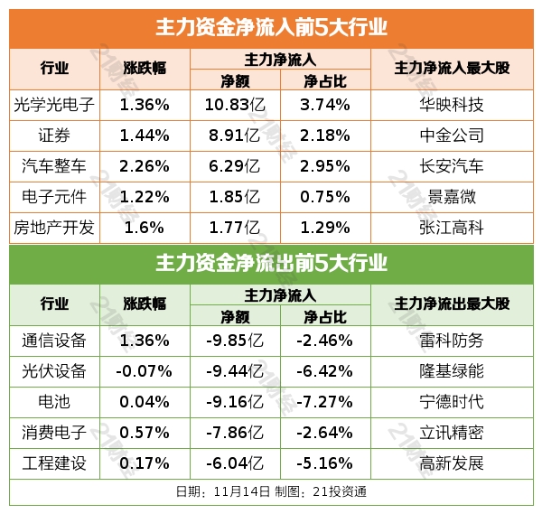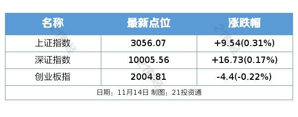11月14日,大盘全天窄幅震荡,三大指数涨跌不一。截至收盘,沪指涨0.31%,深成指涨0.17%,创业板指跌0.22%。盘面上,华为概念股持续活跃,算力概念股震荡走强,先进封装概念股维持强势,汽车股午后走高。下跌方面,煤炭等周期股集体调整。板块方面,鸿蒙概念、华为昇腾、算力租赁、数据确权等板块涨幅居前,煤炭、燃气、贵金属、钢铁等板块跌幅居前。