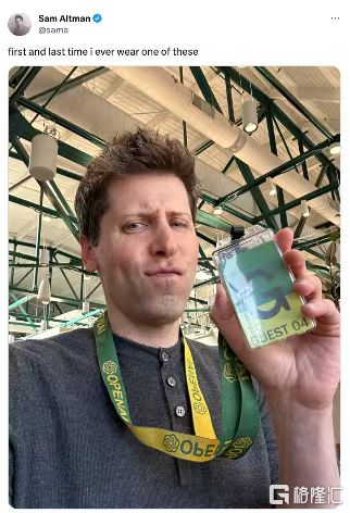 这Altman以为自己回来靠谱了,周日带着访客证记录推文一则“这是我第一次也是最后一次戴这玩意儿来这儿了”。