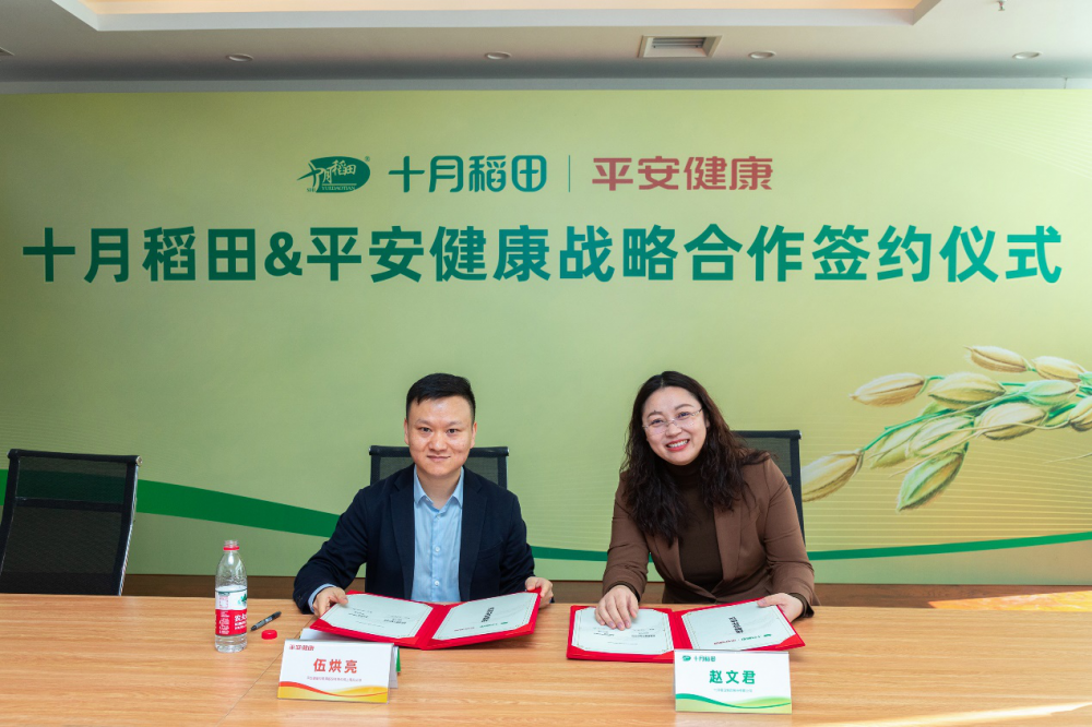 2023年11月9日,平安健康医疗科技有限公司(股票简称:平安好医生,1833.HK 以下简称“平安健康”)与十月稻田集团股份有限公司(股票简称:十月稻田,9676.HK 以下简称“十月稻田”)正式签署战略合作协议,双方将充分发挥各自优势,拓展合作场景,通过“健康饮食+健康管理”的组合服务形式,结合科学膳食及营养管理,为广大用户提供更加安全有效、高品质的健康管理服务。