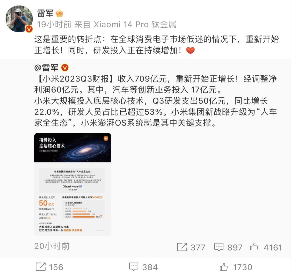 小米14系列,作为小米高端化的最新成果,也在财报中留下了浓墨重彩的一笔。