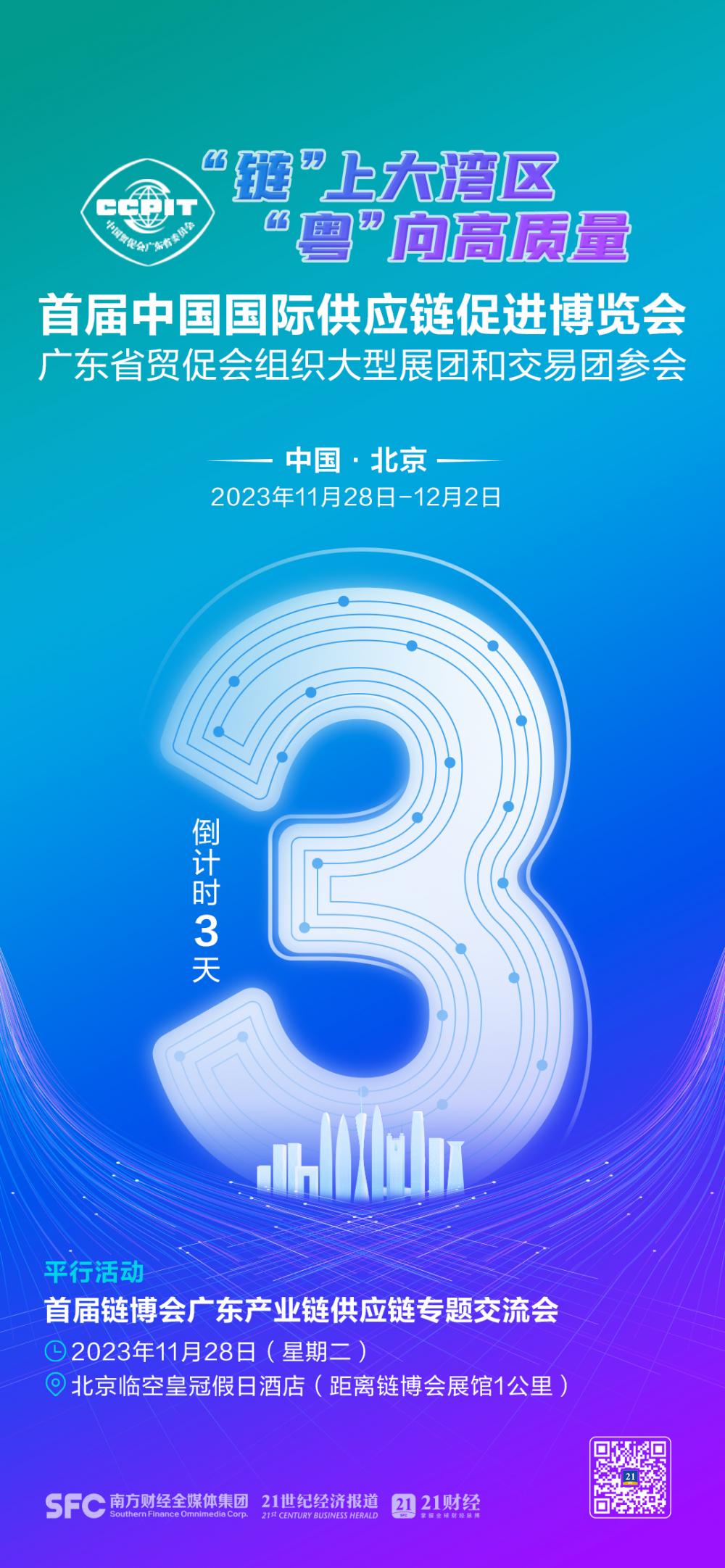 首届链博会期间,广东省贸促会还将举办广东企业专场对接交流活动,向全球宣传展示广东省产业链、供应链的创新成果与实践经验,促进广东企业与全球的产业链合作。