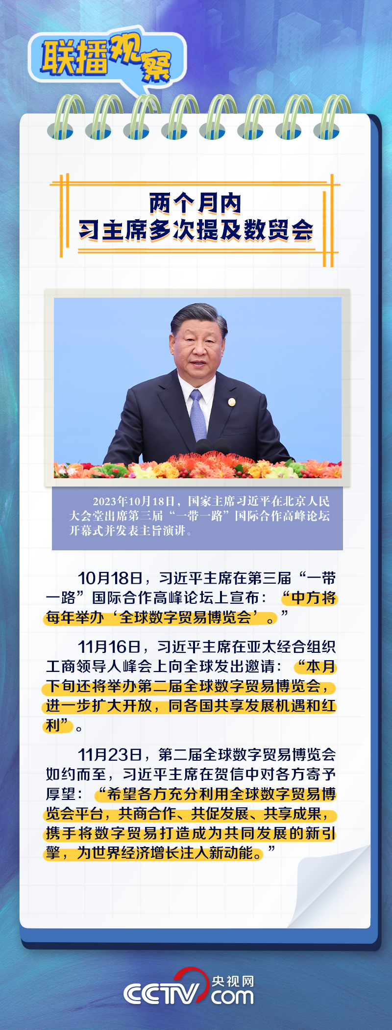 “当前,全球数字贸易蓬勃发展,成为国际贸易的新亮点。”11月23日,习近平主席向第二届全球数字贸易博览会致贺信,回顾了近年来中国为全球数字贸易蓬勃发展付出的努力,并对与会各方寄予厚望。