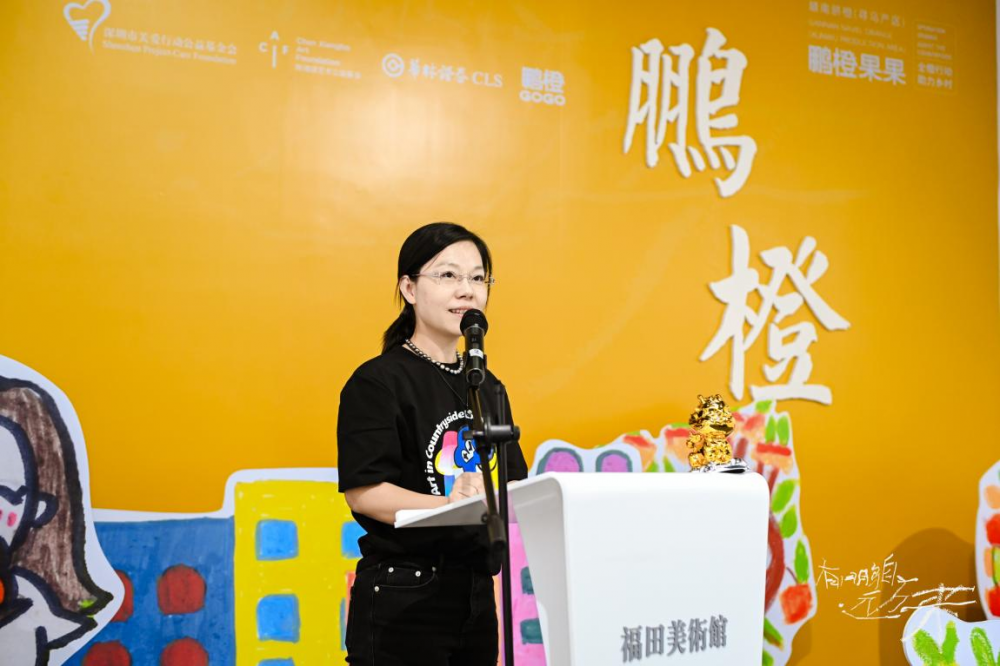 此次公益画展还可以溯源至今年暑假期间。“今年7月,我们招募深圳的青少年组成华林善行团,前往寻乌举行了美好乡村艺术研学营,和留车镇黄姜小学的孩子们进行了艺术共创。”华林证券董事会秘书谢颖明介绍说,“华林证券党委和文化建设小组特意发起了此次主题为‘有鹏自远方来’的城乡儿童公益画展。今天,来自寻乌的33幅作品和深圳的36幅作品一起在福田美术馆展出,是另一种形式的艺术共创,也希望未来更多深寻的孩子们能够参与进来,‘共绘美好乡村,艺启鹏橙万里’。”