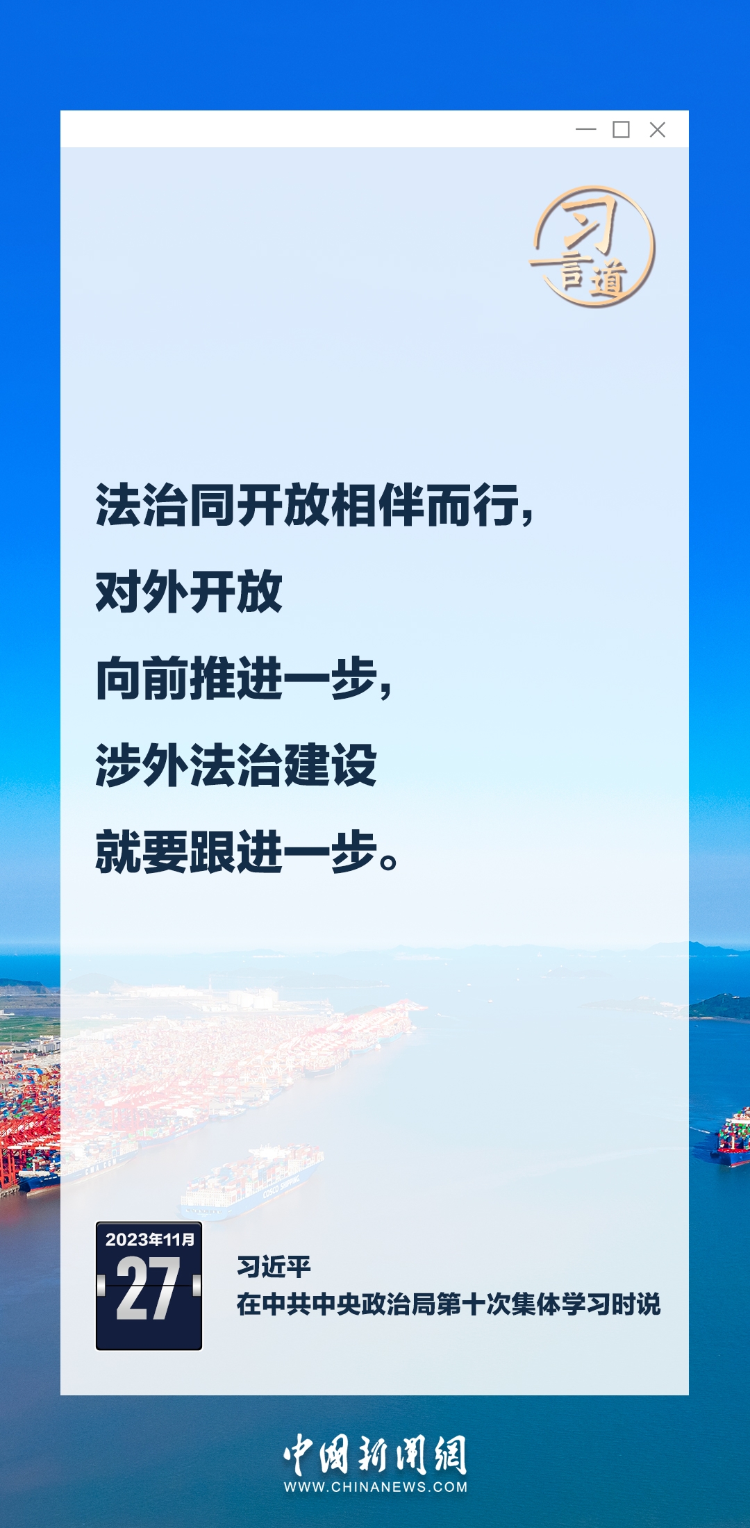 中共中央政治局11月27日下午就加强涉外法制建设进行第十次集体学习。中共中央总书记习近平在主持学习时强调——