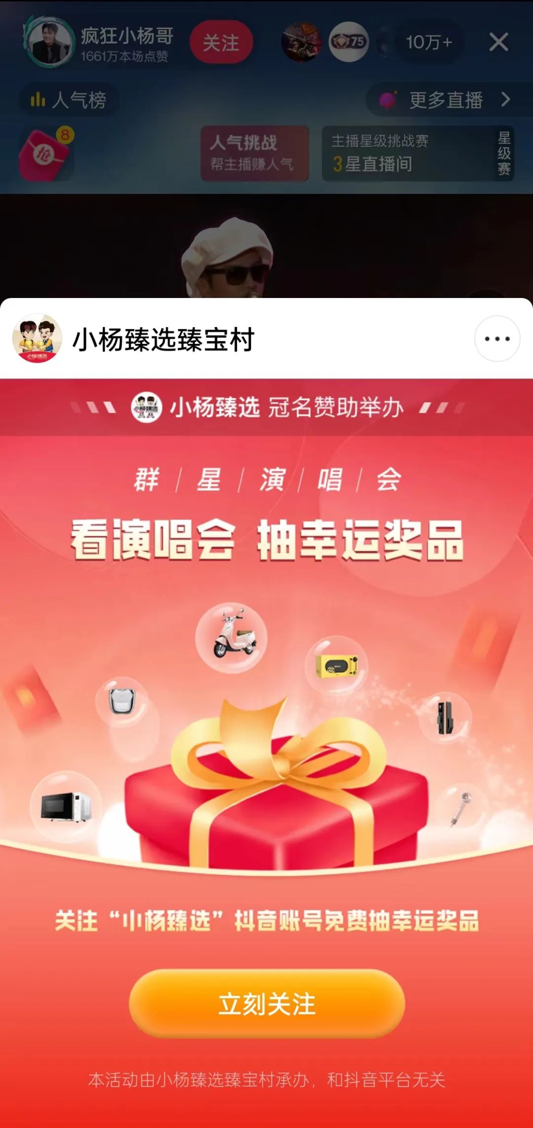 抽奖活动需关注小杨臻选 图源:抖音截图