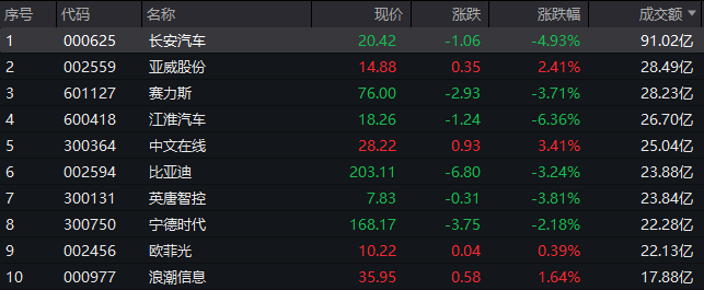 沪深两市半日成交额4862亿,较上个交易日同期放量50亿。个股方面,长安汽车半日成交额91.02亿元居首,亚威股份、赛力斯、江淮汽车、中文在线成交额均超过25亿元,分别为28.49亿元、28.23亿元、26.70亿元、25.04亿元。