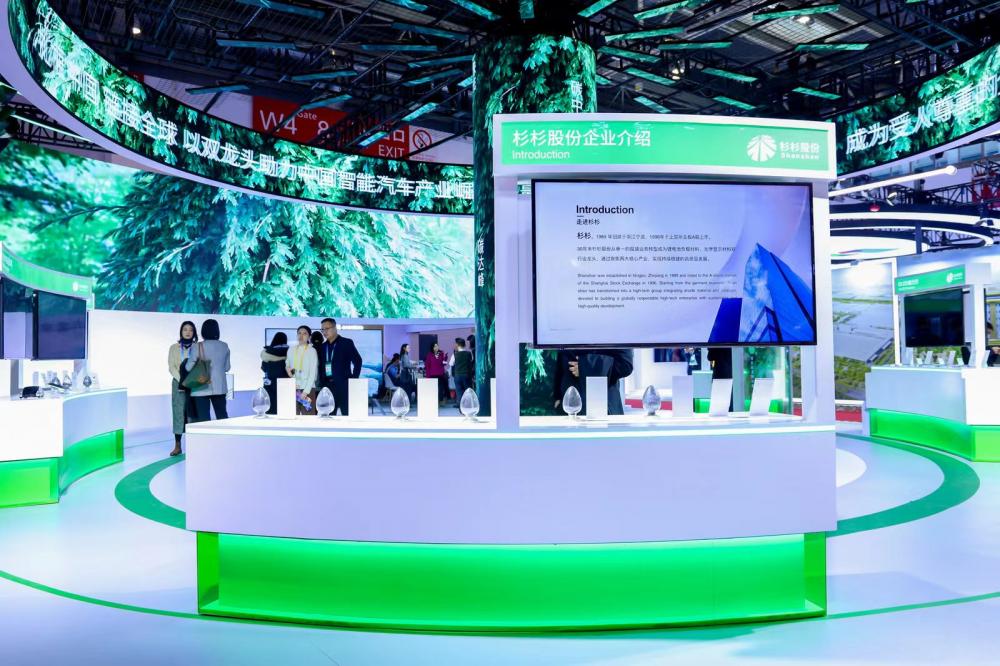在链博会的展台上,记者看到,运用环形屏、透明屏、115寸巨幕TV等新型显示技术,杉杉股份展示了其应用于最新一代高端电动车的4C快充负极、硅基负极和硬碳负极产品,同时还带来了其高端LCD、OLED、车载用偏光片等产尖端显示产品。