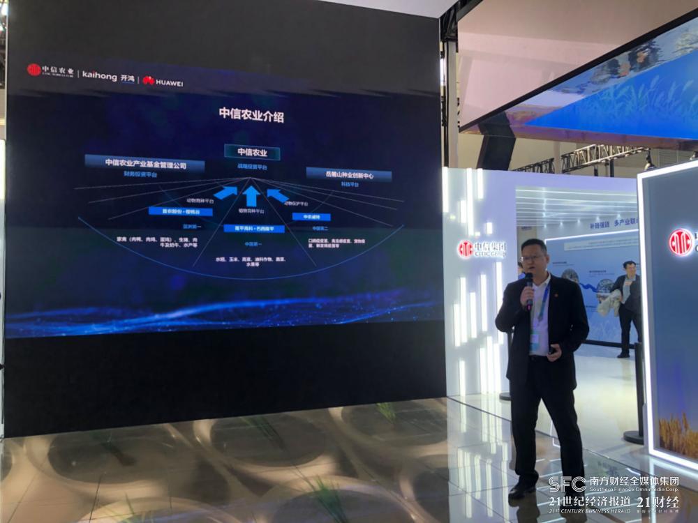 中信集团在绿色农业链展区亮相。11月29日,中信农业科技股份有限公司(简称“中信农业”)联合深圳开鸿数字产业发展有限公司、华为技术有限公司,在展会上正式对外发布国内首个自主可控的农业开源鸿蒙操作系统。