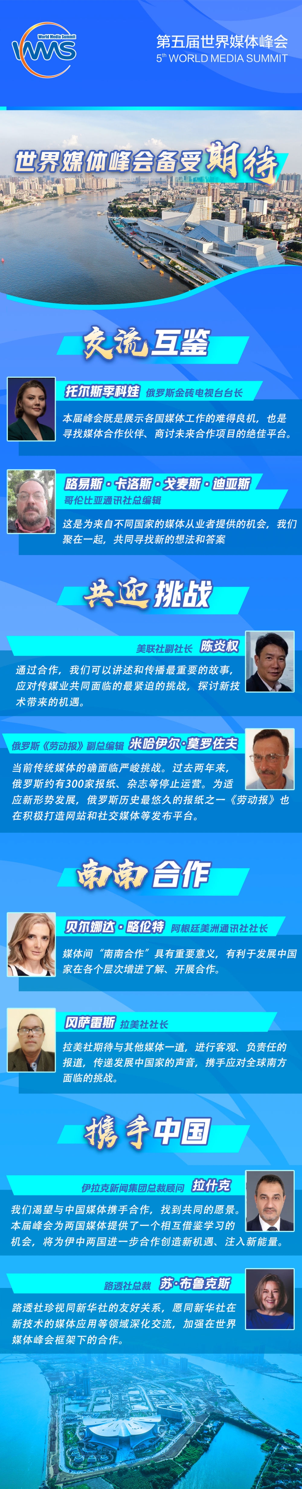 聚焦发展,共迎挑战,提振信心。第五届世界媒体峰会开幕之际,多国媒体人士和与会代表纷纷寄语,期待峰会继续发挥重要交流平台作用,促进媒体互学互鉴、团结发展,在时代变革中把握机遇,展现担当。