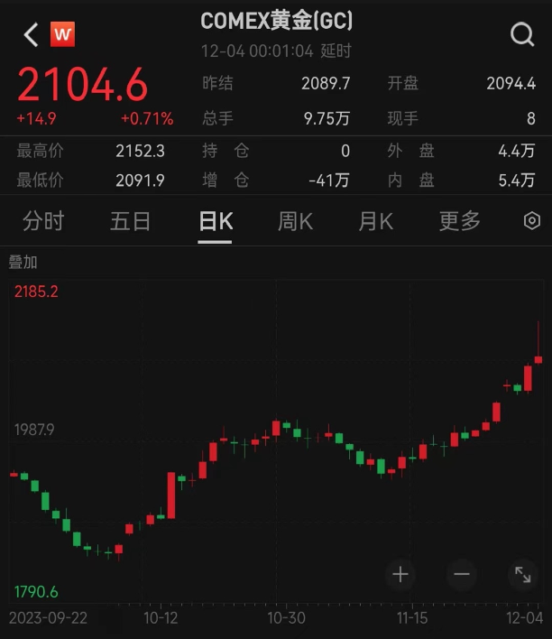 不过,有分析师认为,目前金价14日相对强弱指标(RSI)已经被推升至超买区域,未来金价涨势料在某个阶段出现暂停或小幅回调。但总体而言,随着市场购买兴趣的回升,金价的上涨趋势大概率会持续到明年。