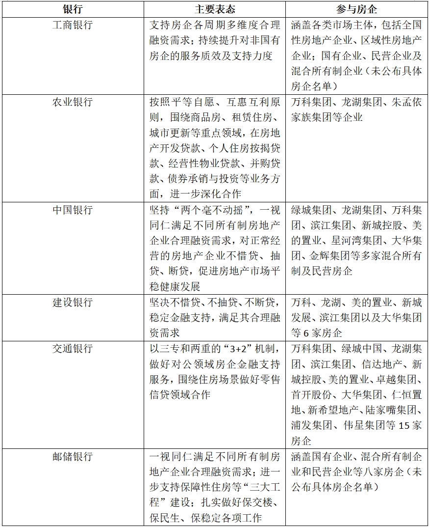 (六大国有银行召开房企座谈会相关内容, 21世纪经济报道依据采访和公开资料整理)