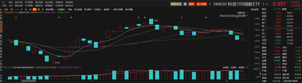 科创100指数ETF(588030)午间收涨0.20%,换手率8.21%,成交额4.89亿元,交投活跃。