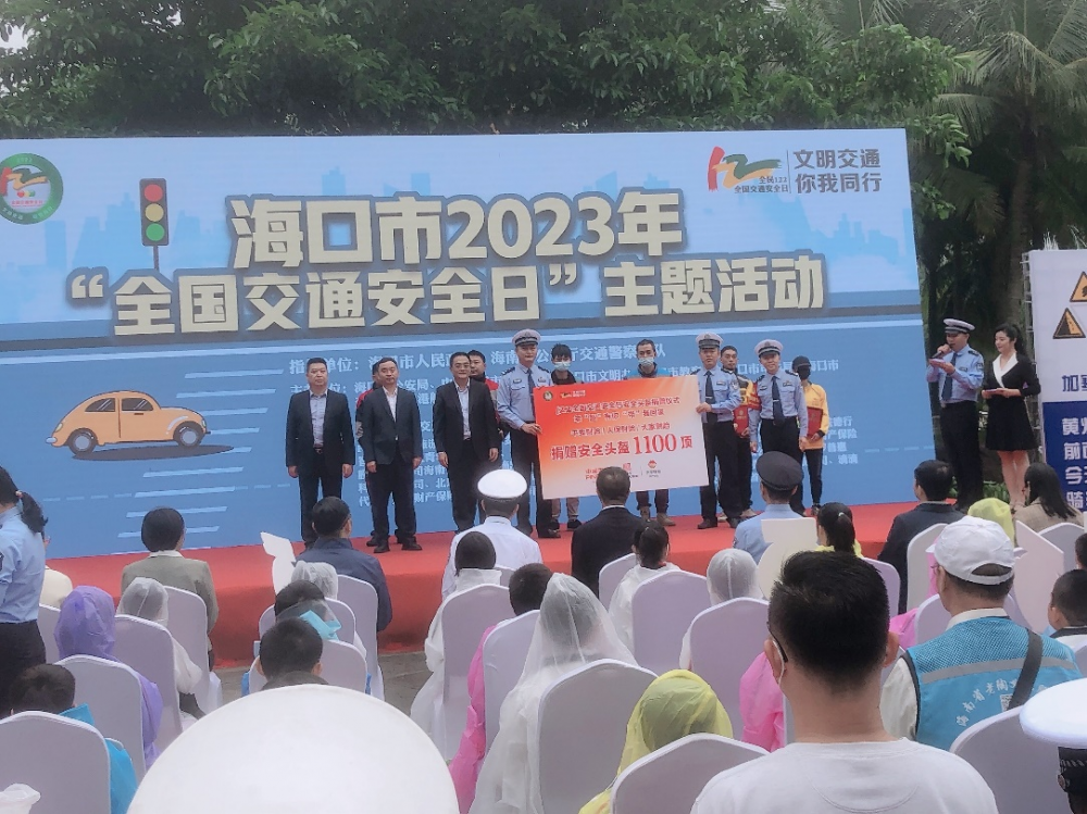 平安财险海南分公司等保险企业现场向市民捐赠安全头盔