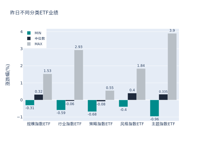 12月6日,股票型ETF收益率中位数为0.26%。其中按照不同分类,规模指数中广发上证科创板成长ETF收益率最高,为1.53%;行业指数中万家中证工业有色金属主题ETF收益率最高,为2.93%;策略指数中建信深证基本面60ETF收益率最高,为0.55%;风格指数中大成深证成长40ETF收益率最高,为1.84%;主题指数中华夏中证动漫游戏ETF收益率最高,为3.9%。