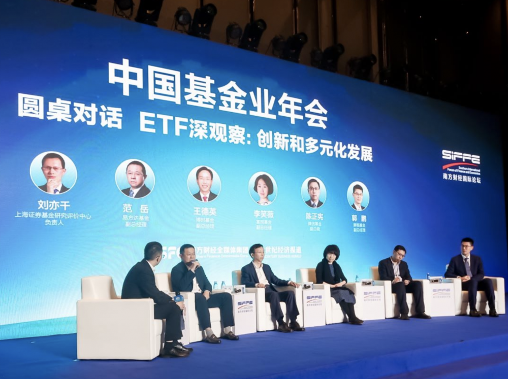 在主题为“ETF深观察:创新和多元化发展”的圆桌论坛环节上,来自上海证券基金研究评价中心负责人刘亦千作为主持人,与来自5家基金公司的ETF领军人物深入探讨了自家公司发展ETF的特色“打法”,以及未来ETF发展空间和路径。