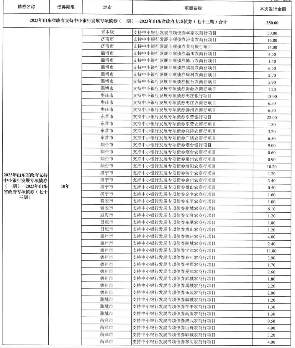 (山东省最新中小银行专项债多为补充农商行,来源:山东省财政厅)