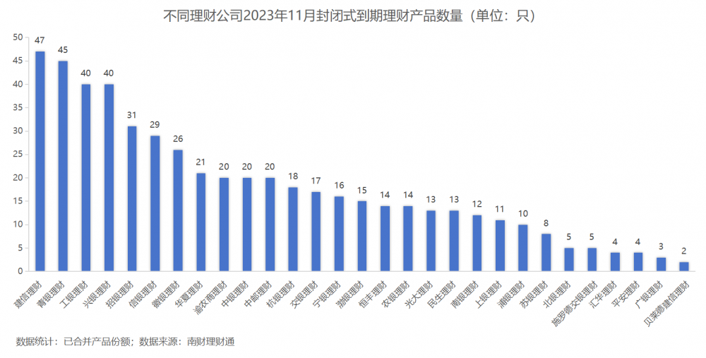 11月到期产品环比基本持平,建信理财到期产品数量最多