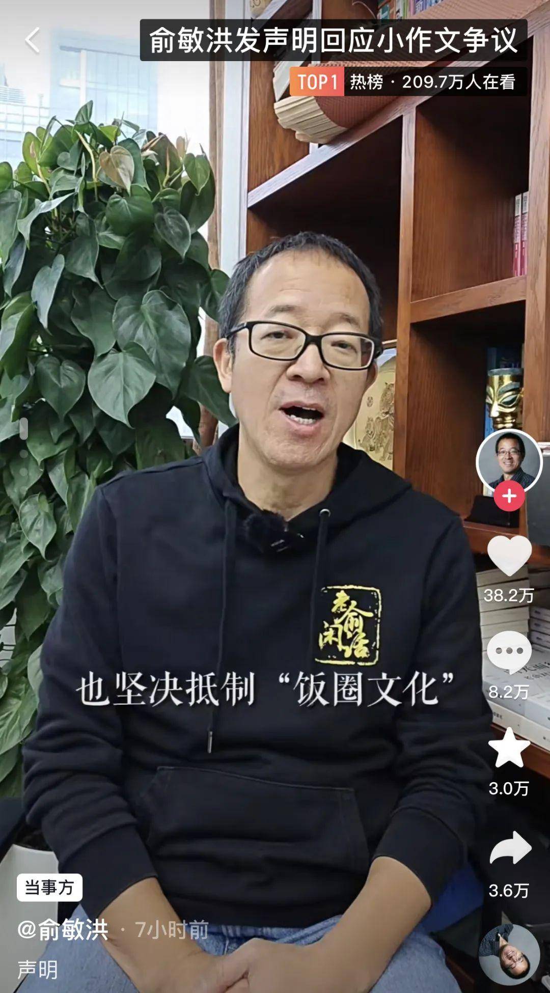 在最近的回应视频中,俞敏洪表示,自己从来都不知道什么是“饭圈文化”,这次也算是被普及了一下。