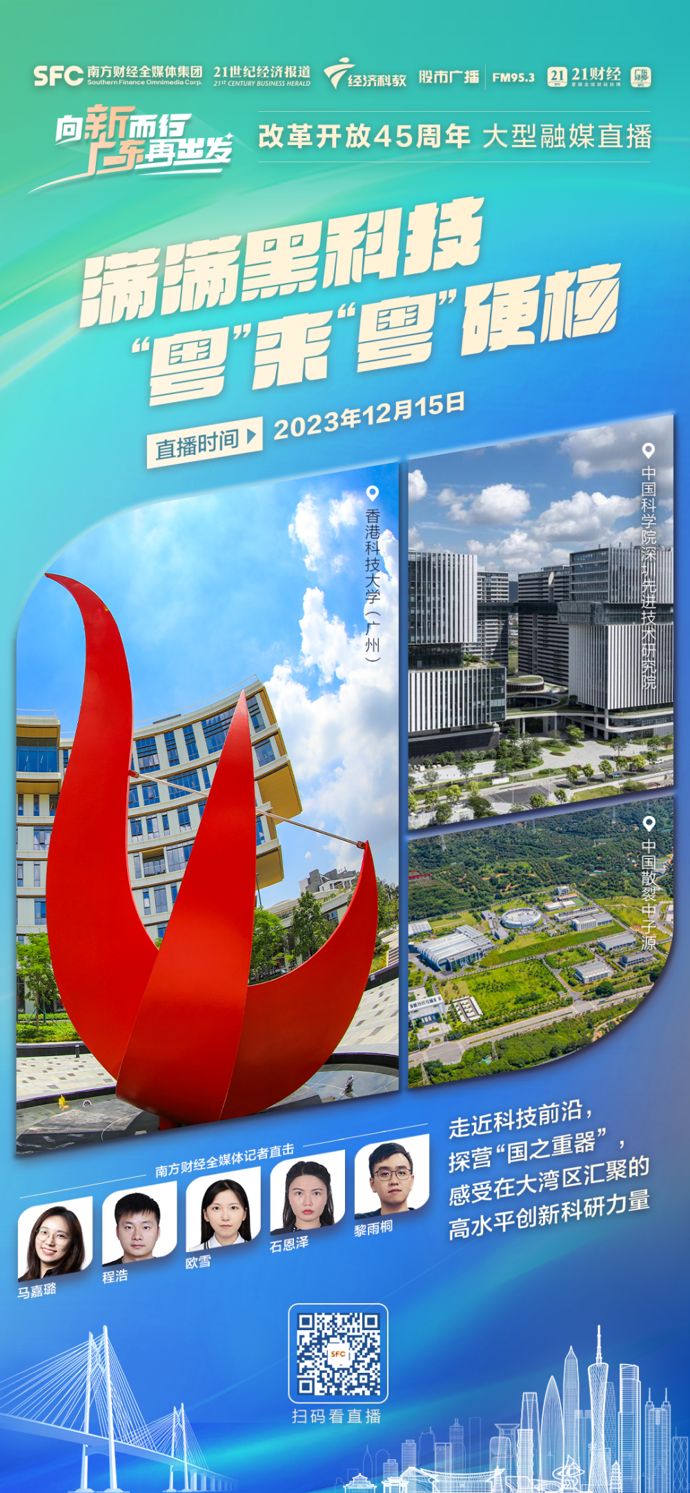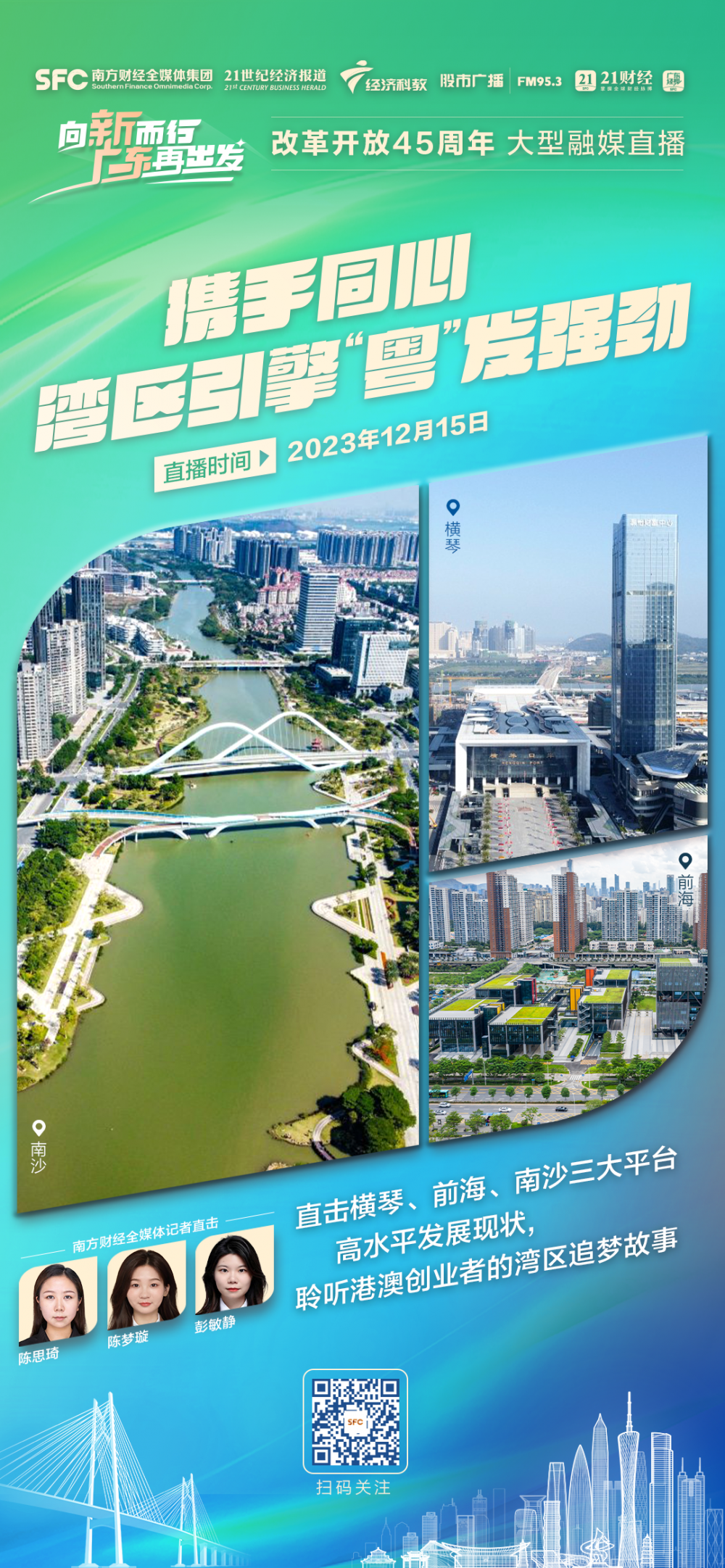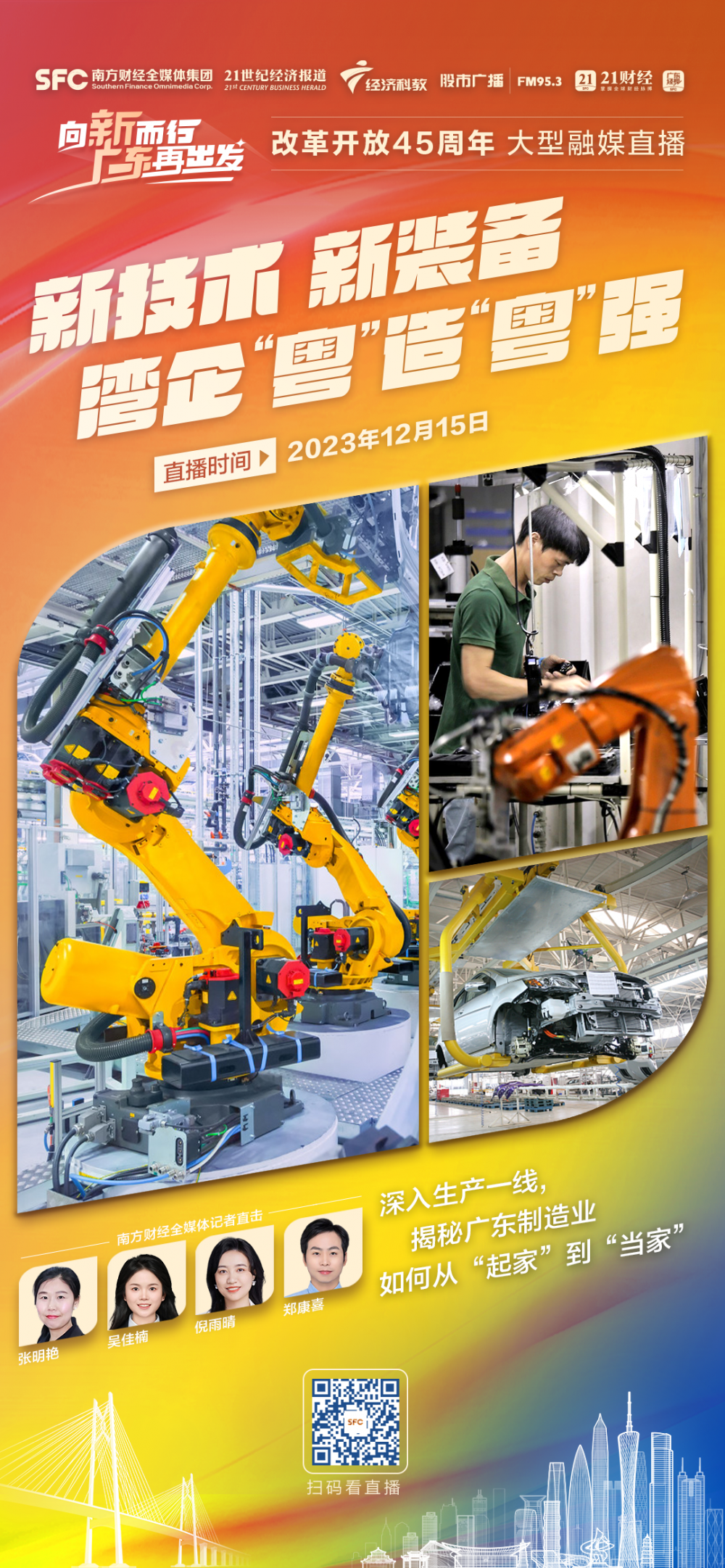 在改革开放45周年之际,南方财经全媒体集团旗下21财经客户端、广东经视重磅推出《向新而行 广东再出发》大型融媒直播。