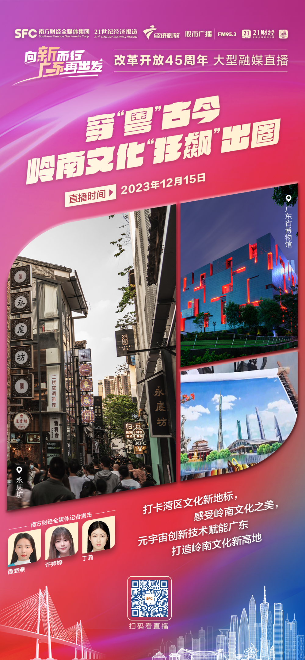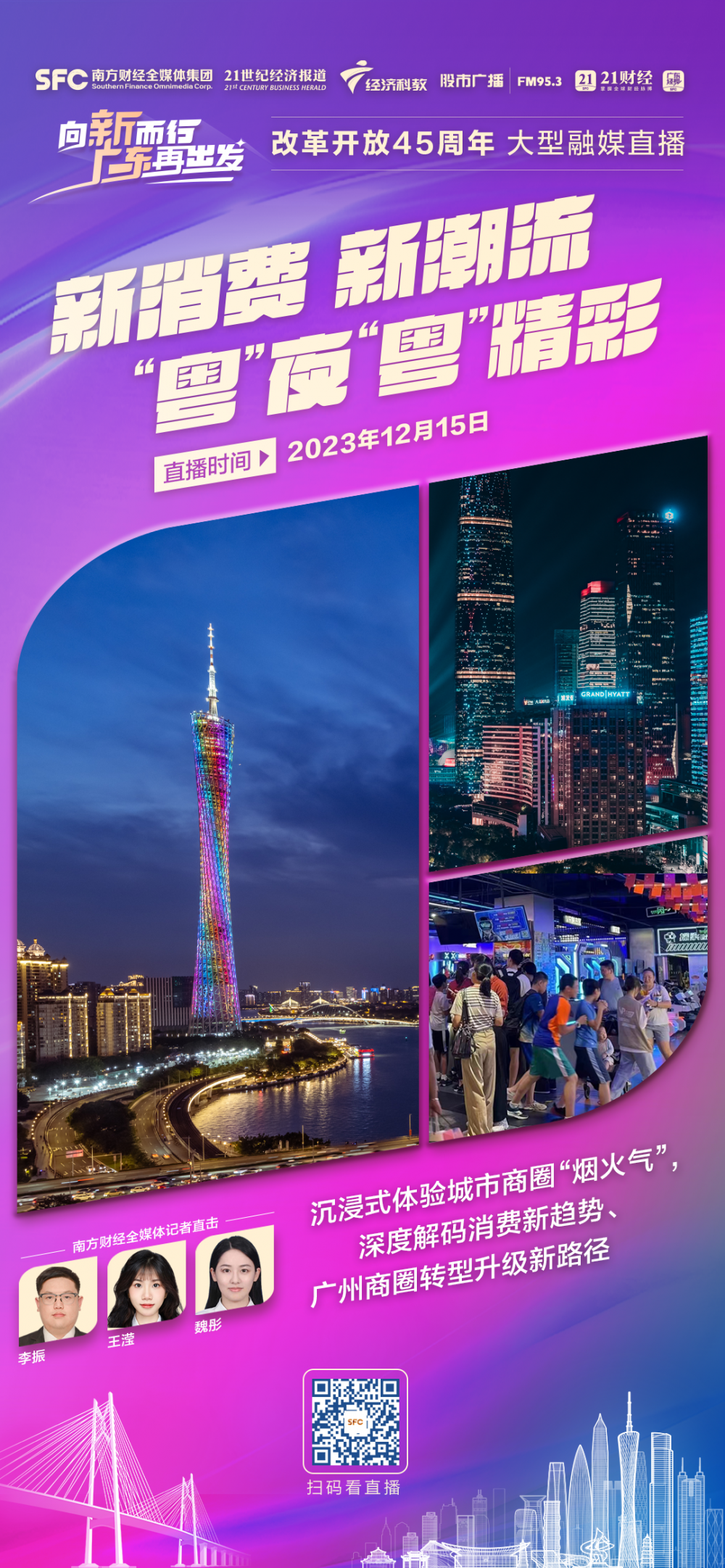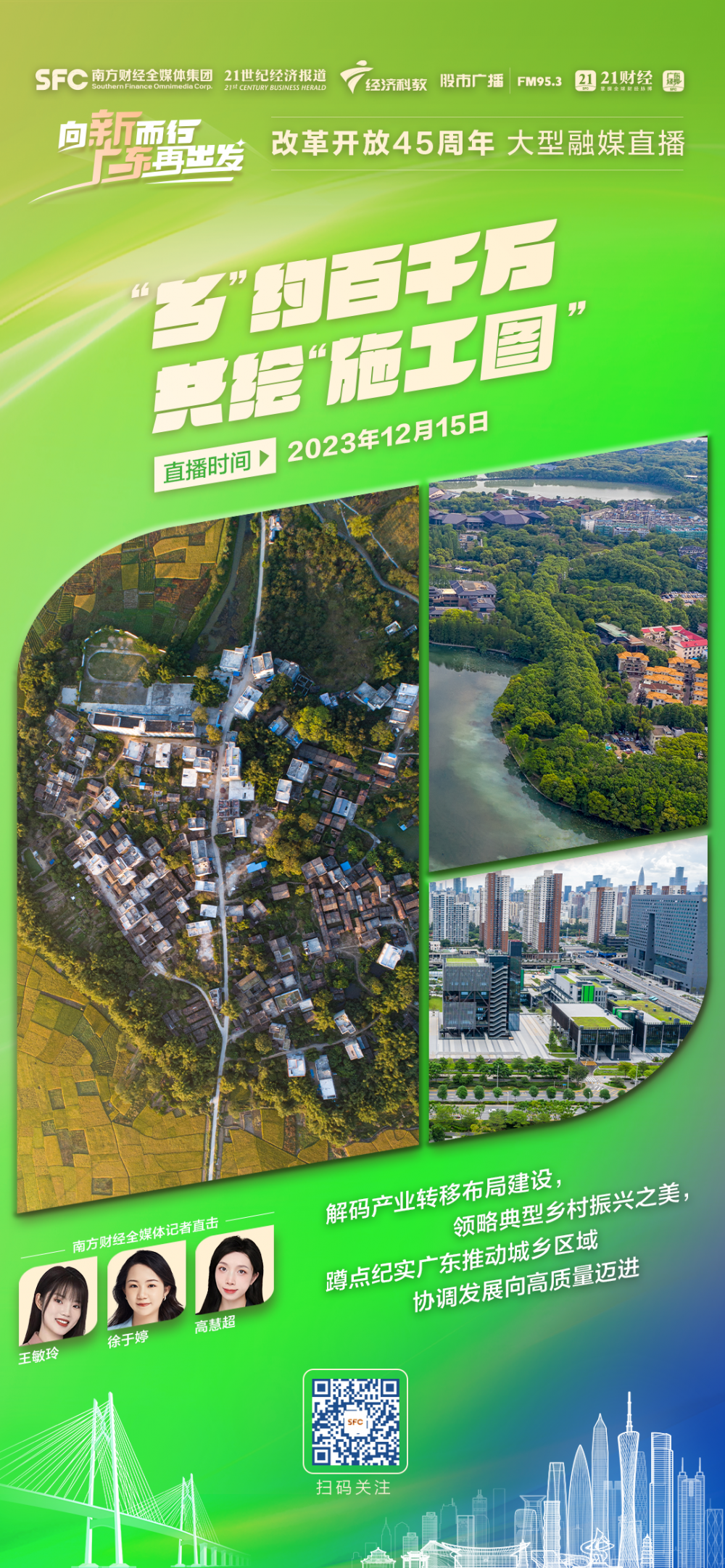 在改革开放45周年之际,南方财经全媒体集团旗下21财经客户端、广东经视重磅推出《向新而行 广东再出发》大型融媒直播。