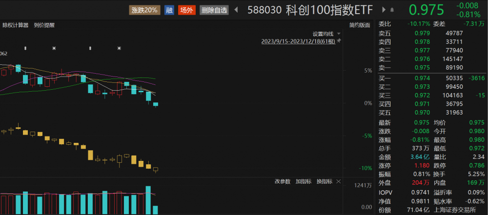 科创100指数ETF(588030)盘中震荡走弱,现跌0.81%,成交额3.64亿元,盘中频现溢价交易。