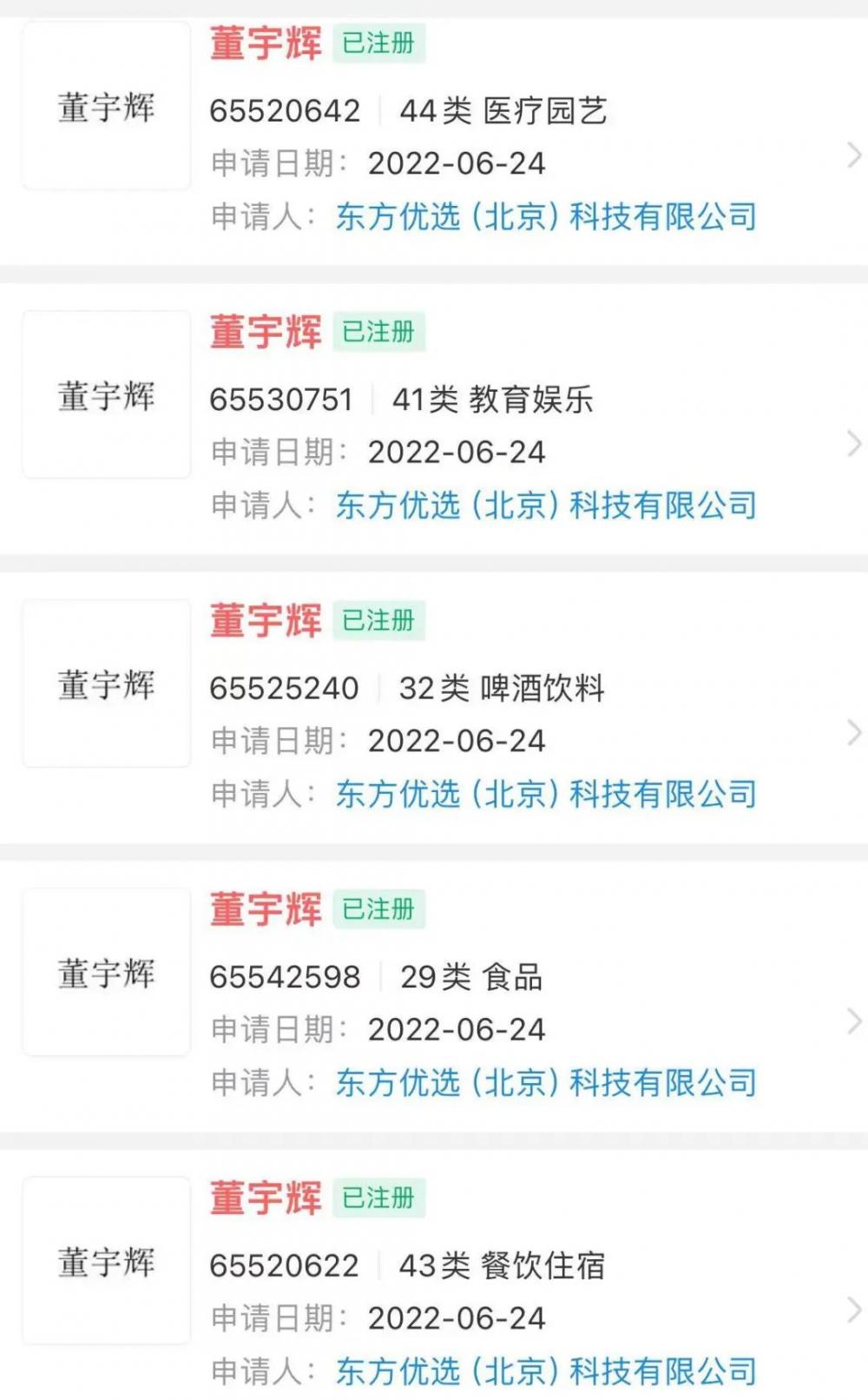 值得一提的是,东方优选公司申请的多个“董宇辉”商标已成功注册,其他公司或自然人申请的商标大多已被驳回,处于无效状态。