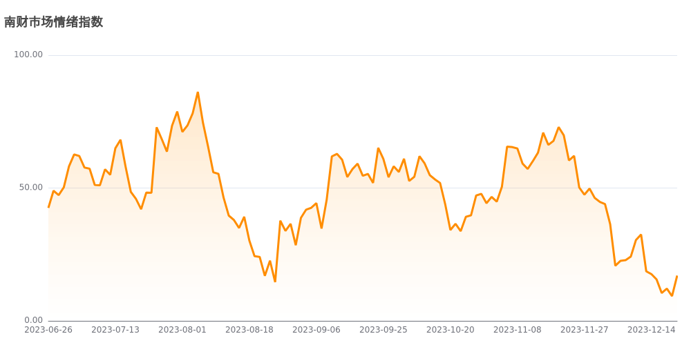 今日南财市场情绪指数为17.0,较前一交易日9.3大幅上涨,市场投资热度明显提升。