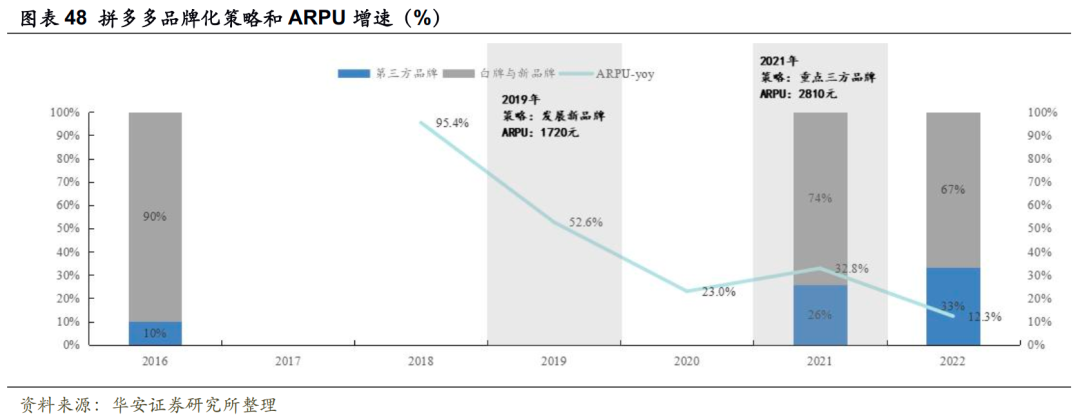 华安证券在2022年发布过一组观测数据,拼多多上白牌和新品牌商家GMV 占比高达67%。SKU足够丰富的白牌,成为拼多多的核心竞争力之一。
