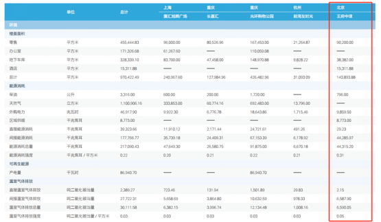 从另一角度也可见其温室气体排放量的水平,王府中環2022年的环境表现数据在《2022年香港置地中国内地可持续发展白皮书》中进行了范围1和范围2的披露,其全年的直接温室气体排放当量(范围1)仅为2.15吨,温室气体排放强度为0.05吨/平方米。