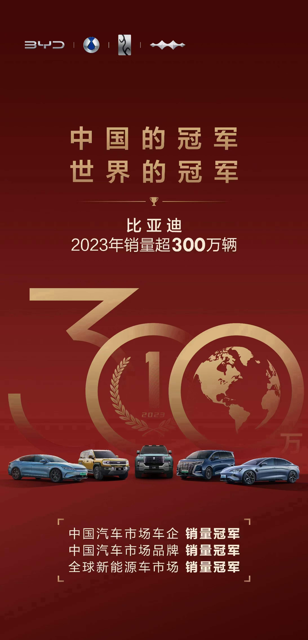 中国车企总销量第一、全球新能源车企销量第一、中国汽车市场的1/10……怪不得,王传福要在那场发布会中落下眼泪。比亚迪年销三百万,有喜悦,更有无数艰辛。
