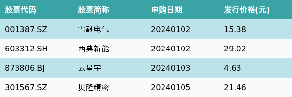 1月2日-1月5日,有4只新股发行,详情见下表: