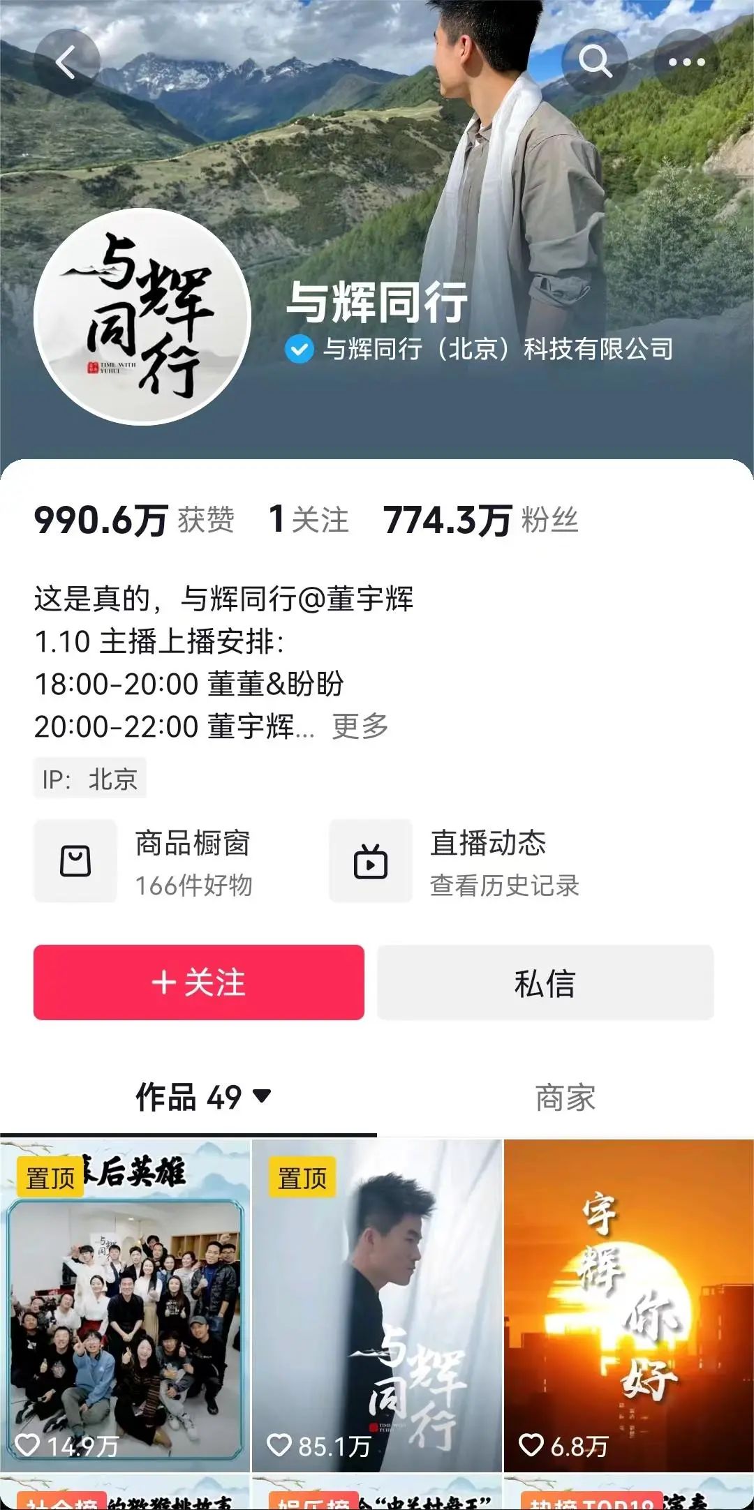 “与辉同行”账号 图源:抖音