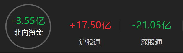 北向资金全天净卖出3.55亿,其中沪股通净买入17.5亿元,深股通净卖出21.05亿元。