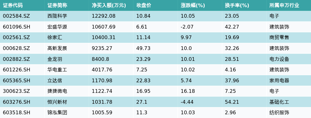 1月15日龙虎榜营业部净买入额前10详情见下表: