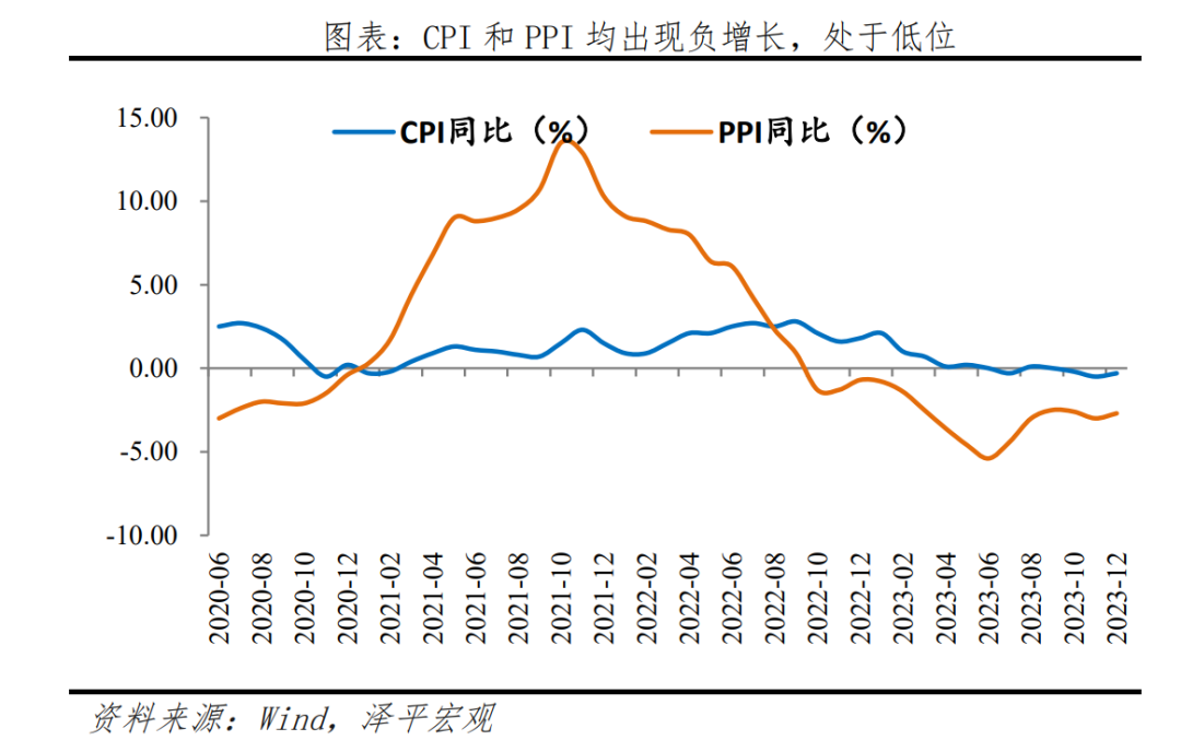 物价连续负增长,需降息对冲实际利率上升。12月CPI同比-0.3%,连续三个月负增长;核心CPI同比0.6%;PPI同比-2.7%,物价指数持续低迷显示内需有待提振,降息可对冲实际利率上升,提振信心。