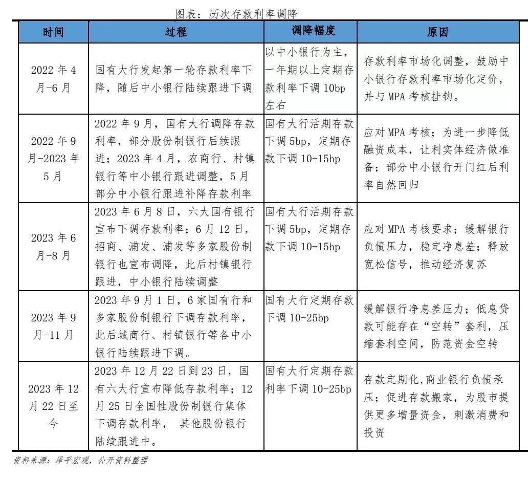 存款利率调降,为降息打开政策空间。12月22日,六大国有银行相继下调存款挂牌利率,降幅在10-25bp,其中3年期和5年期的定期存款利率下调幅度最大,达25bp。市场普遍预计调降存款利率将缓解银行负债端压力,为降息打开政策空间。