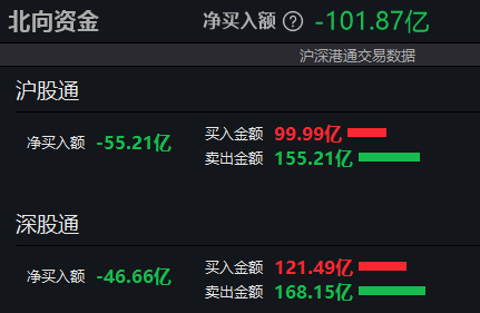 北向资金半日净卖出101.87亿元。其中沪股通净卖出55.21亿元,深股通净卖出46.66亿元。