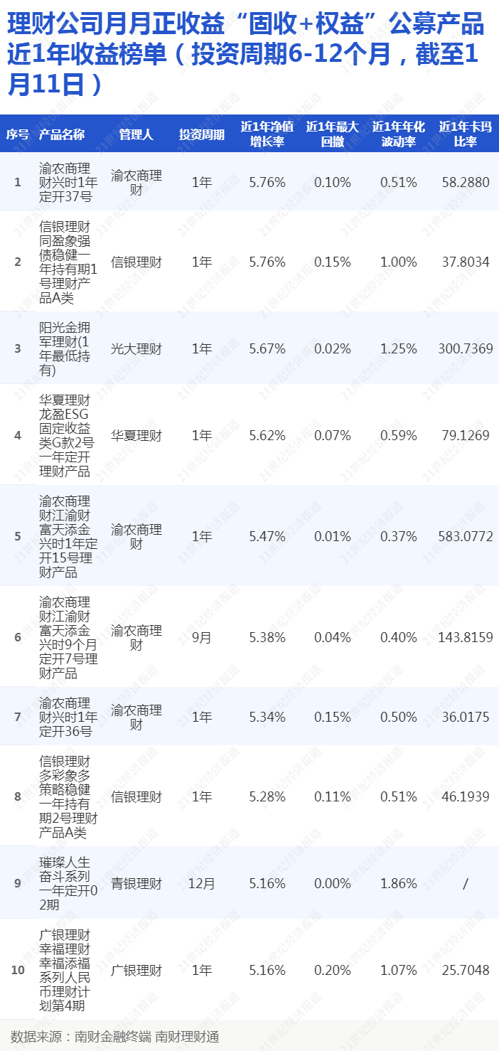 仅2成6-12个月投资周期“固收+”理财每月收益为正,单品年化收益最高达5.76%丨机警理财日报