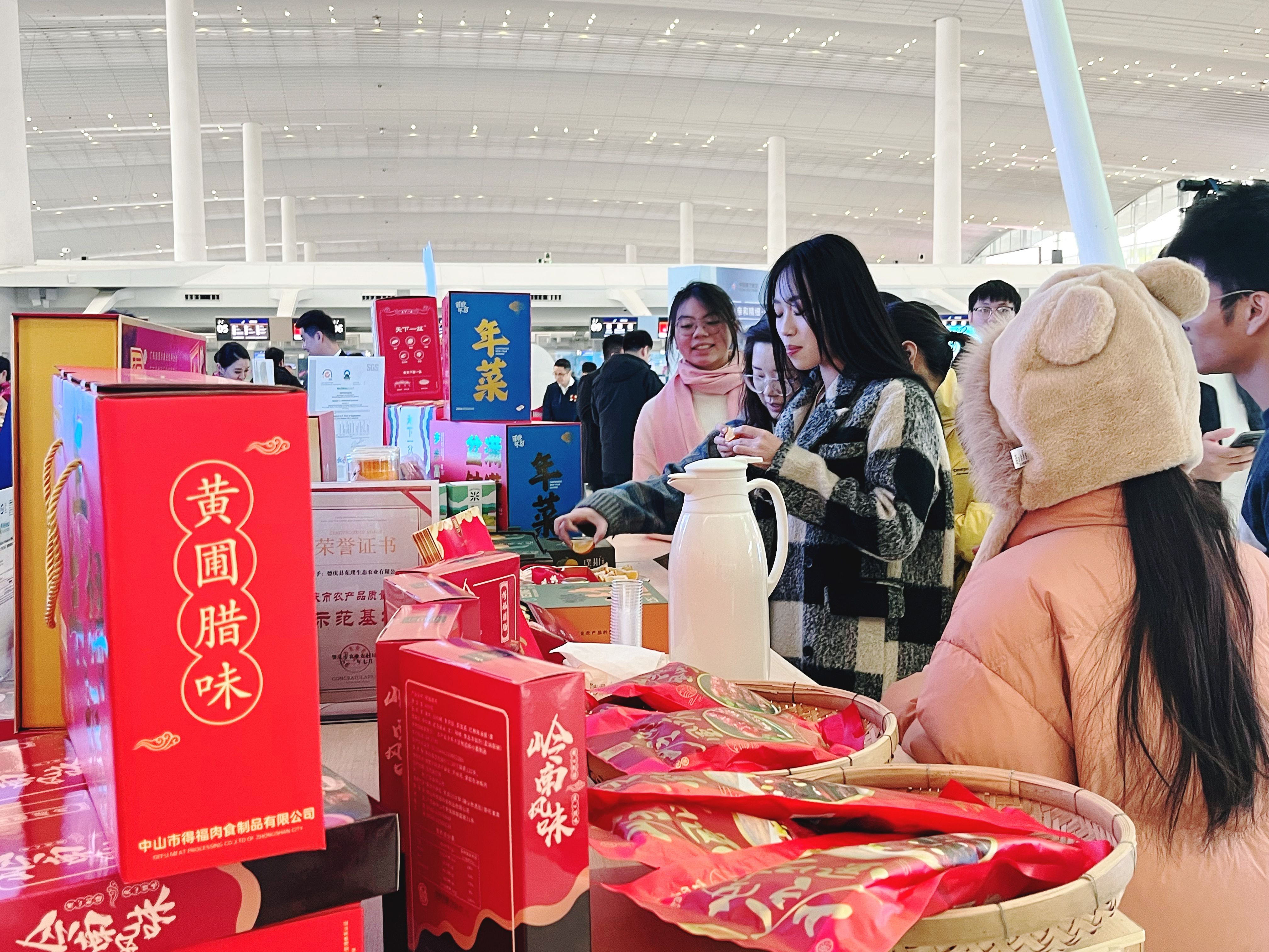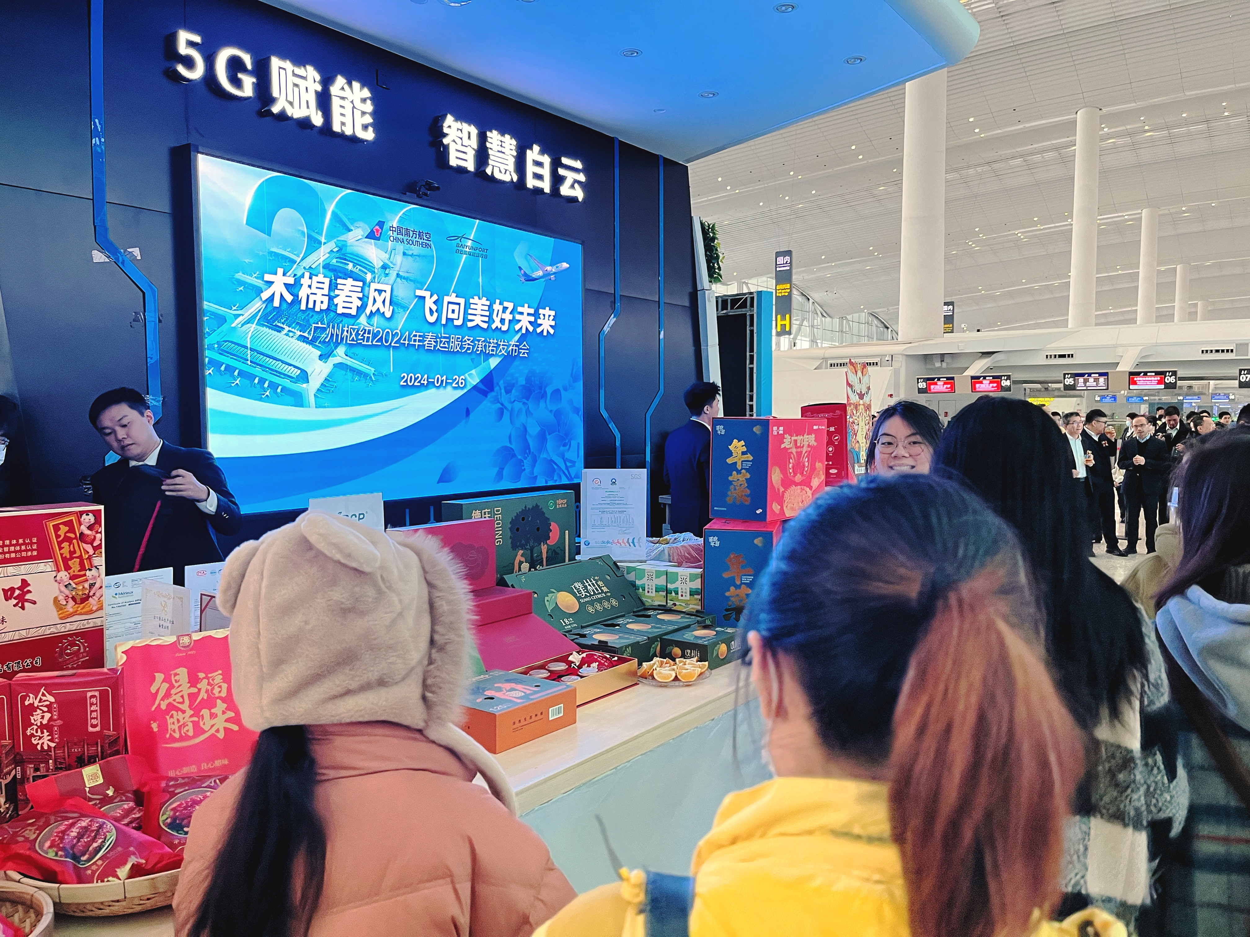 共绘“南”图,引领“食”尚。为进一步促进消费,提升服务,中国南方航空联合广州白云国际机场、广东省农业农村厅,联合举办“木棉春风·飞向美好未来”2024年春运服务承诺发布会,同期进行“把广东味道带回家”金牌“年菜”企业进白云机场展销活动。